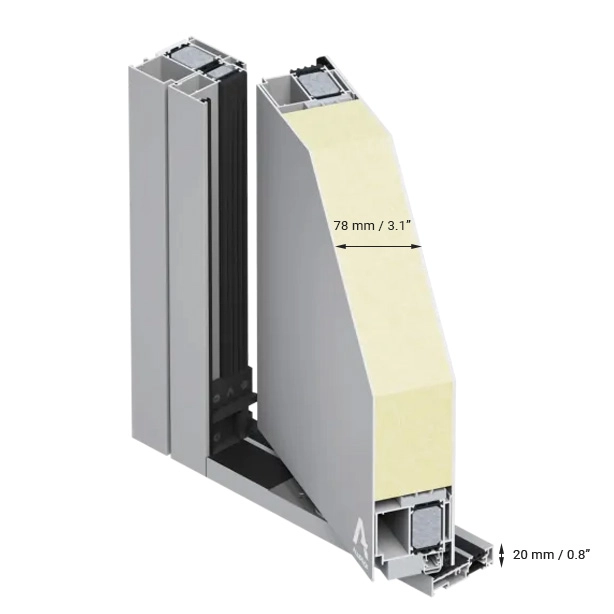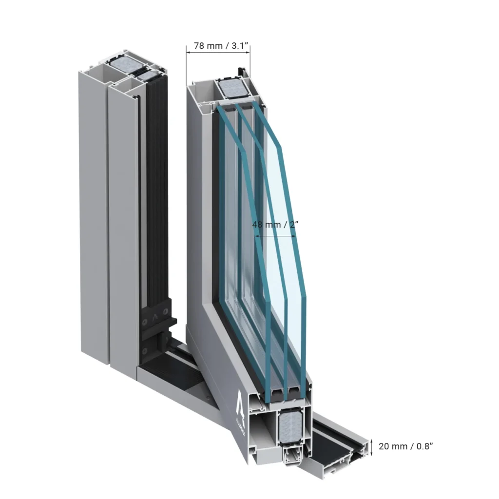 Made entirely from aluminum, PIVOT doors offer a unique and grand entrance with an offset pivot point. The profile is insulated with foam and coated with aluminum, ensuring thermal efficiency, durability, and a striking contemporary appearance ideal for large openings.