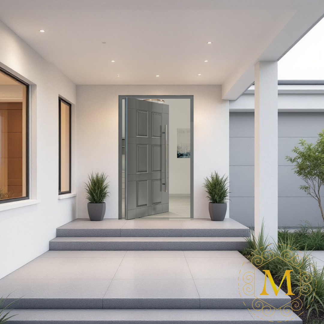 - Available Dimensions: PIVOT doors are typically made for custom, often oversized, dimensions to create a statement entrance.